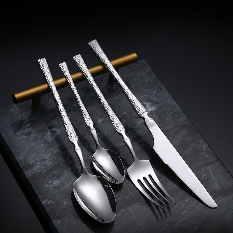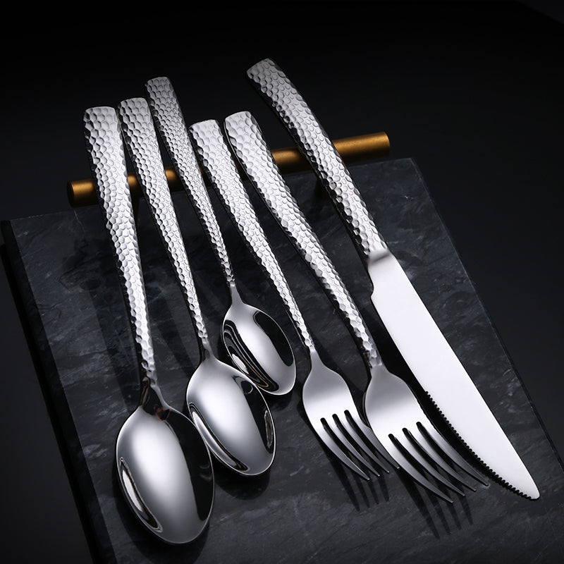 Hammered Silverware Set Stainless Steel Square Flatware Set Service Tableware Cutlery Set Includes Forks Spoons Knives