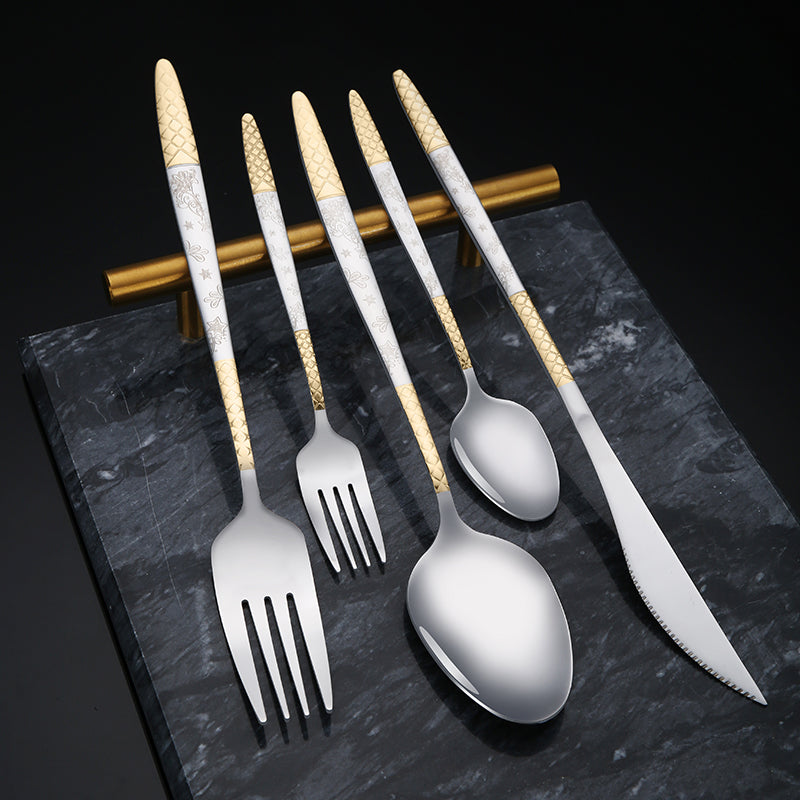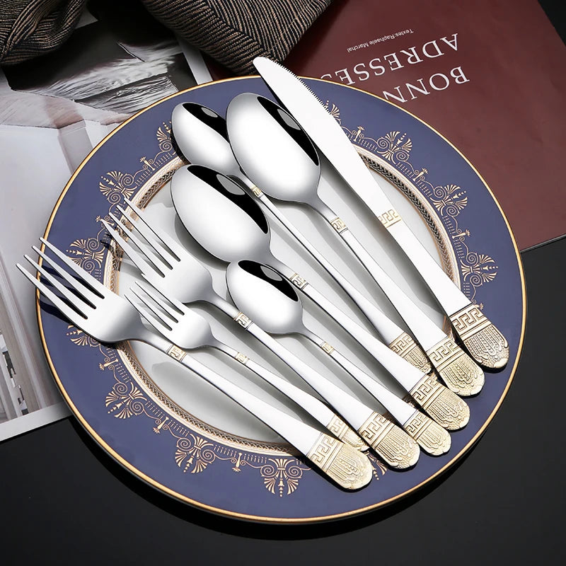 French Moonlight Wedding Cutlery Gold Silverware Elegant Flatware Set