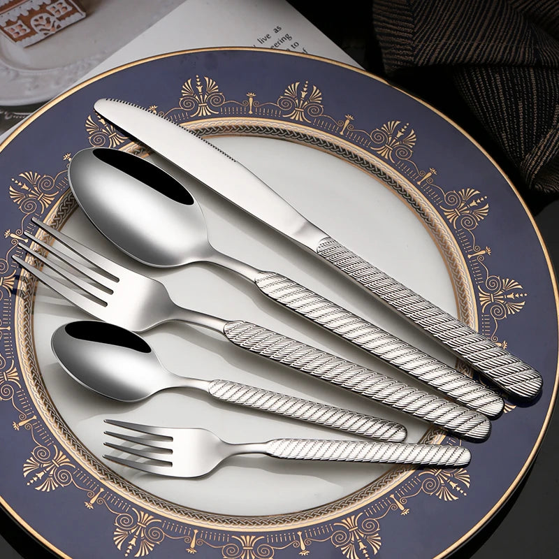 Thread handle cutlery stainless steel golden modern silverware flatware set for wedding events