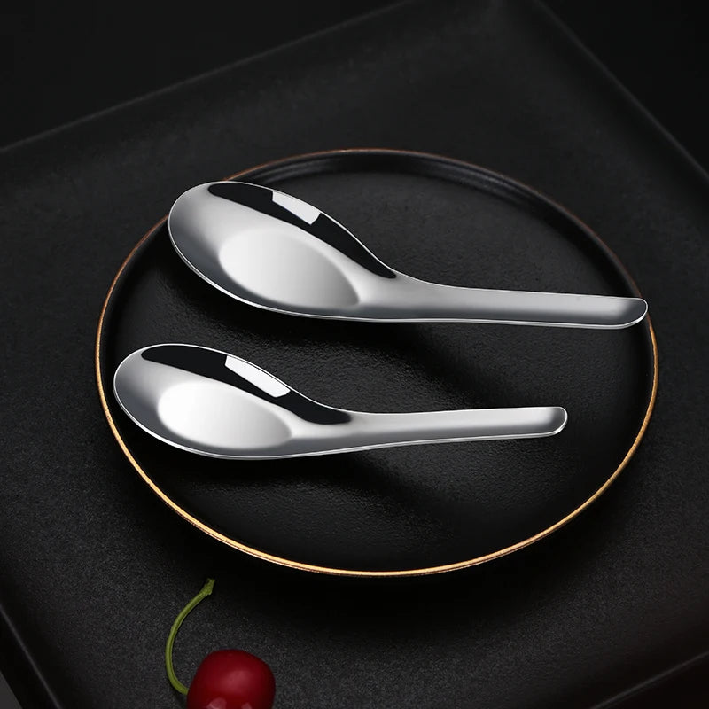 Soup Spoons Stainless Steel Table Spoon Heavy Duty Asian Soup Spoon Short Handle Ramen Spoons for Soup Rice Tea Milk